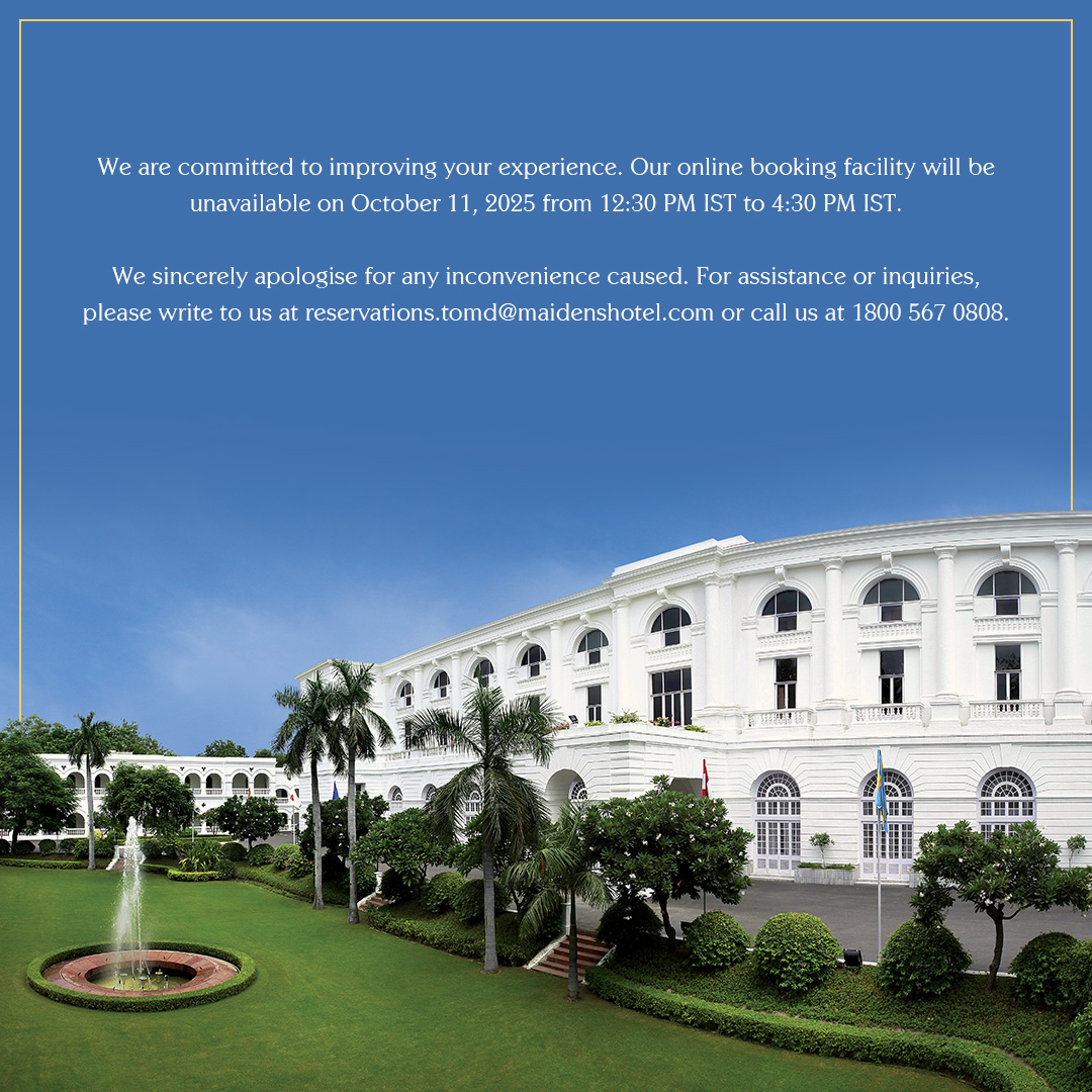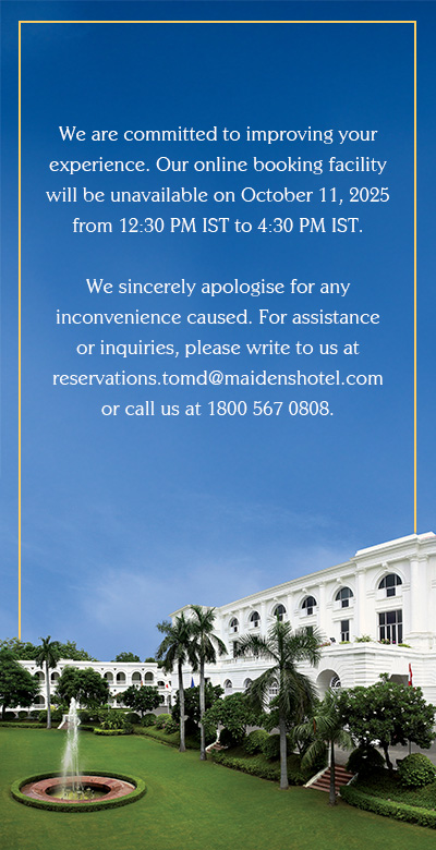 In our endeavour to always offer our guests services and facilities of the highest standards we are upgrading the swimming pool at Maidens Hotel. The swimming pool will be closed from 01st January, 2019 until 30th April, 2019. We sincerely apologise for any inconvenience that the maintenance work may cause to our guests and we welcome our guests to enjoy poolside services at The Oberoi, New Delhi. We shall be happy to arrange transfers between the two hotels.